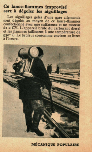 Ce lance-flammes improvisé sert à dégeler les aiguillages