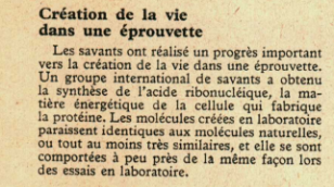 Création de la vie dans une éprouvette