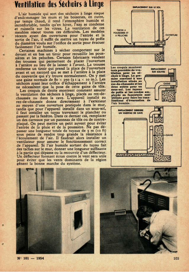 Ventilation des séchoirs à linge