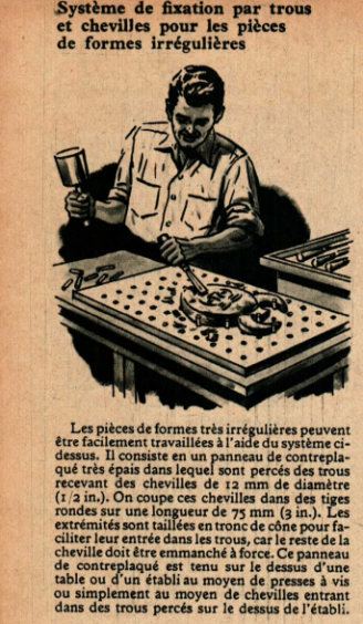 Système de fixation par trous et chevilles pour les pièces de formes irrégulières