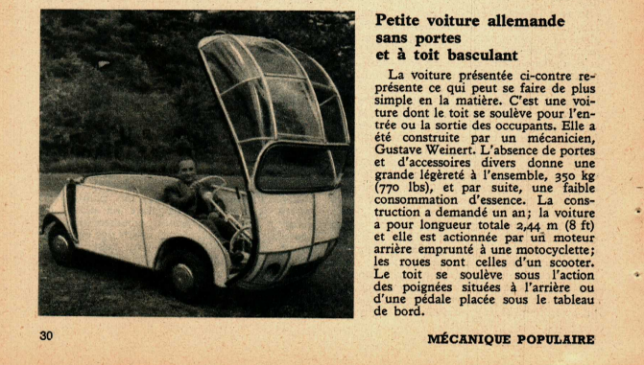 Petite voiture allemande sans portes et à toit basculant