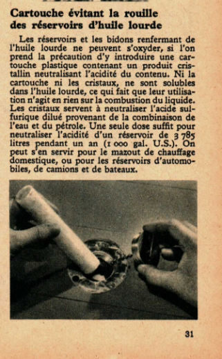 Cartouche évitant la rouille des réservoirs d’huile lourde