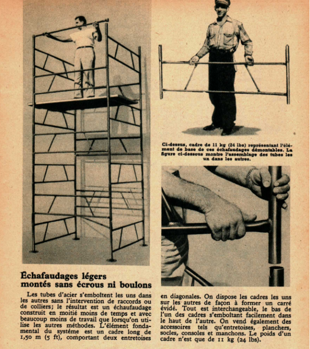 Échafaudages légers montés sans écrous ni boulons