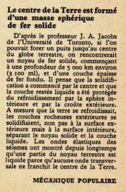 Le centre de la terre est formé d’une masse sphérique de fer solide