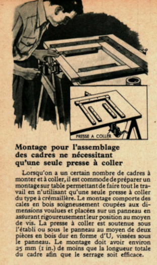 Montage pour l’assemblage des cadres ne nécessitant qu’une seule presse à coller