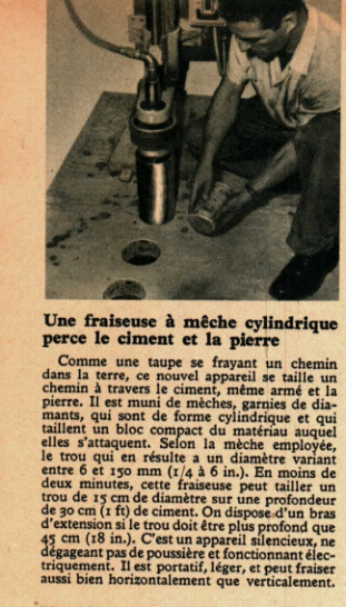 Une fraiseuse à mèche cylindrique perce le ciment et la pierre