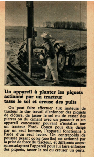 Un appareil à planter les piquets actionnés par un tracteur tasse le sol et creuse des puits