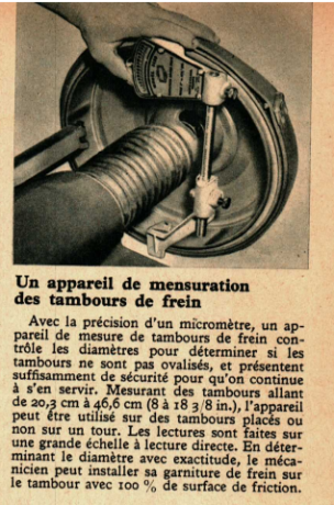 Un appareil de mensuration des tambours de frein