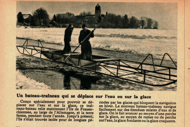 Un bateau-traineau qui se déplace sur l’eau ou sur la glace