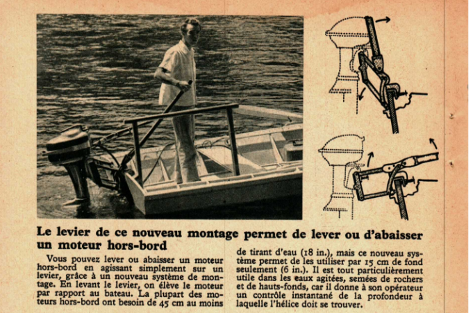Le levier de ce nouveau montage permet de lever ou d’abaisser un moteur hors-bord