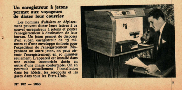 Un enregistreur à jetons permet aux voyageurs de dicter leur courrier