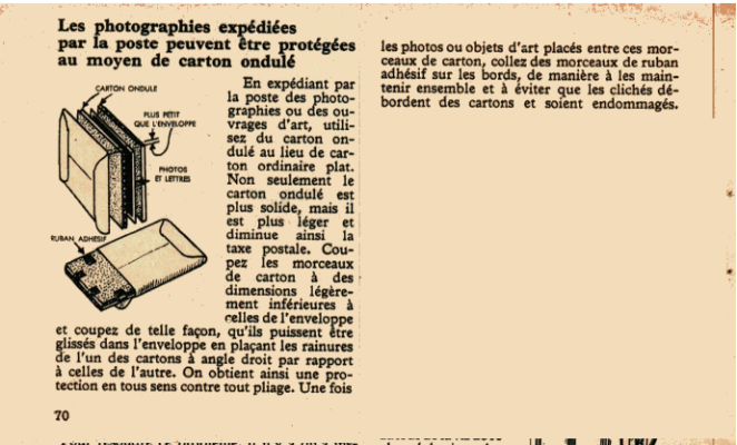 Les photographies expédiées par la poste peuvent être protégées au moyen de carton ondulé.