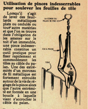 Utilisation de pinces indesserrables pour soulever les feuilles de tôle