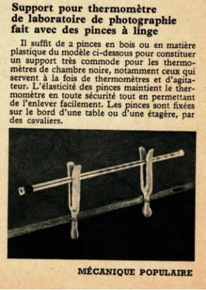 Support pour thermomètre de laboratoire de photographie fait avec des pinces à linge