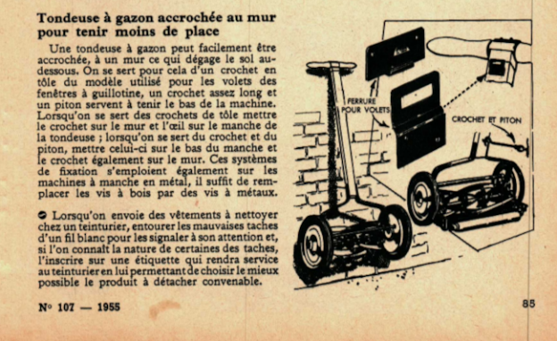Tondeuse à gazon accrochée au mur pour tenir moins de place