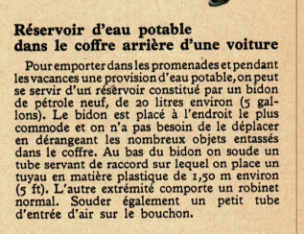 Réservoir d’eau potable dans le coffre arrière d’une voiture