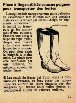Pince à linge utilisée comme poignée pour transporter des bottes