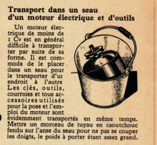 Transport dans un seau d’un moteur électrique et d’outils