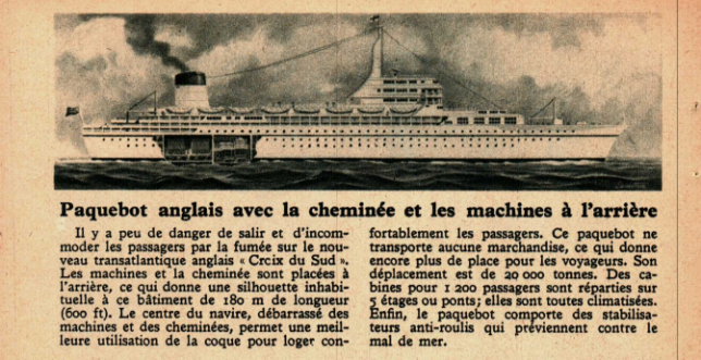 Paquebot anglais avec la cheminée et les machines à l’arrière