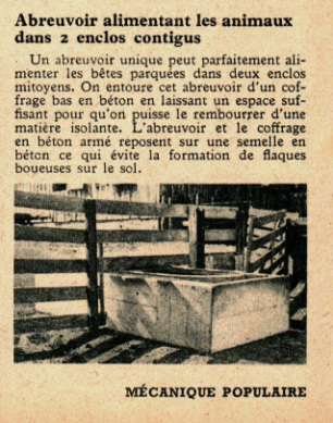 Abreuvoir alimentant les animaux dans deux enclos contigus