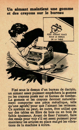 Un aimant maintient une gomme et des crayons sur le bureau
