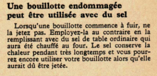 Une bouillotte endommagée peut être utilisée avec du sel