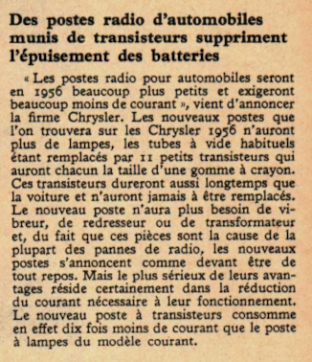 Des postes radio d’automobiles munis de translateurs suppriment l’épuisement des batteries