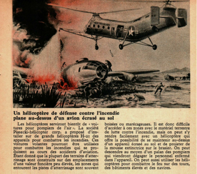 Un hélicoptère de défense contre l’incendie plane au-dessus d’un avion écrasé au sol