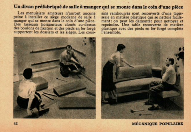 Un divan de salle à manger préfabriqué qui se monte dans le coin d’une pièce