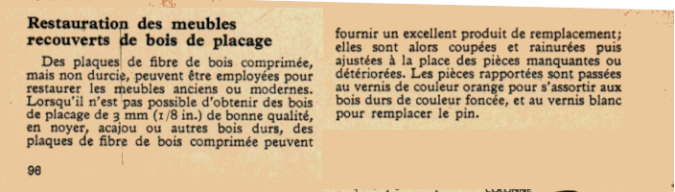 Restauration des meubles recouverts de bois de placage