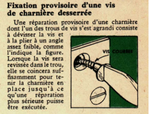 Fixation provisoire d’une vis de charnière desserrée