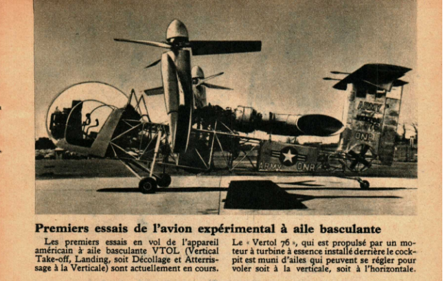 Premiers essais de l’avion expérimental à aile basculante