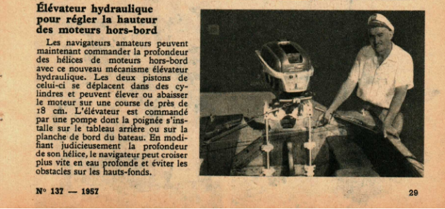 Élévateur hydraulique pour régler la hauteur des moteurs hors-bords