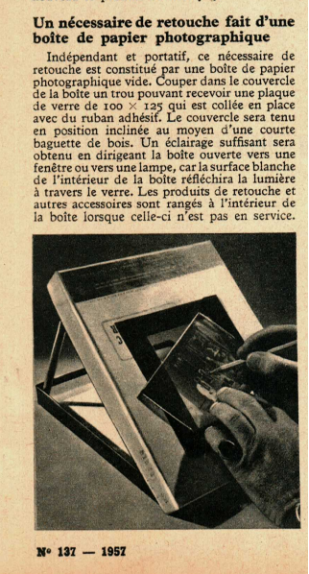 Un nécessaire de retouche fait d’une boîte de papier photographique
