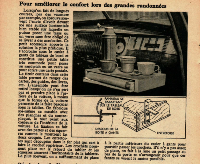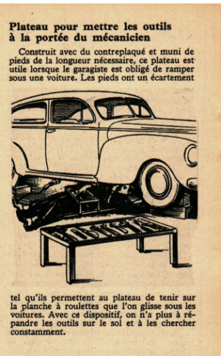 Plateau pour mettre les outils à la portée du mécanicien