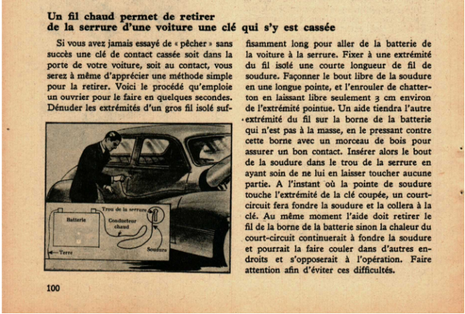 Un fil chaud permet de retirer de la serrure une clé qui s’y est cassée