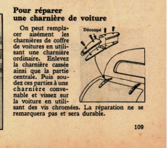 Pour réparer une charnière de voiture
