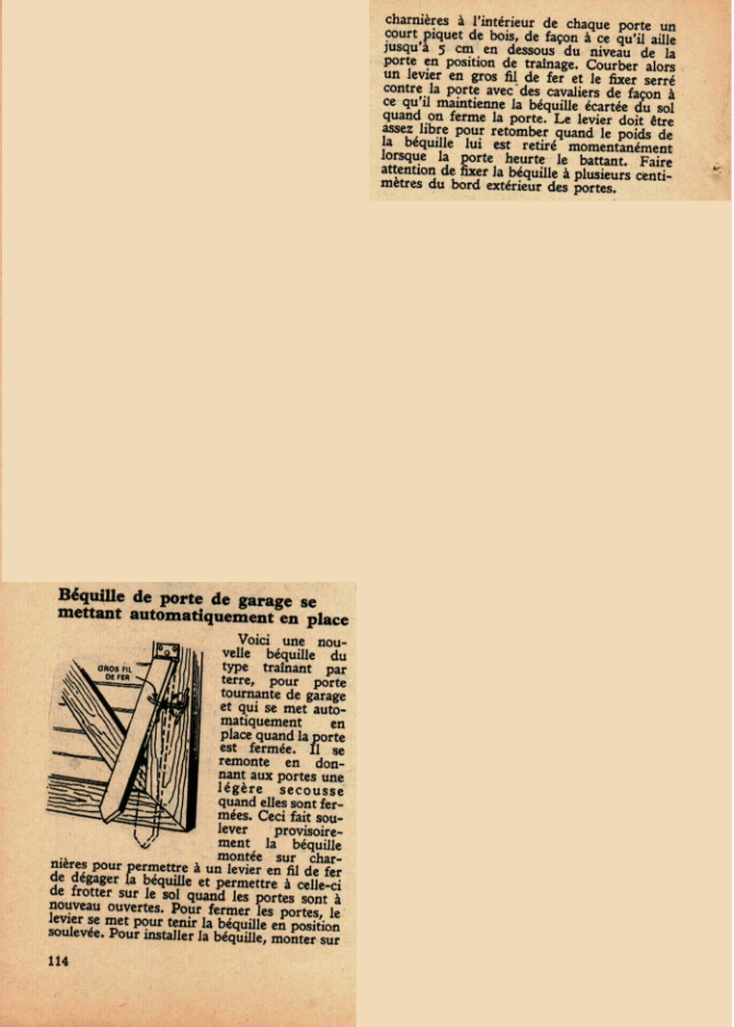 Béquille de porte de garage se mettant automatiquement en place