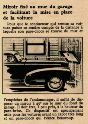 Miroir fixé au mur du garage et facilitant la mise en place de la voiture