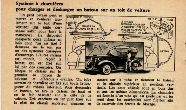 Système à charnières pour charger et décharger un bateau sur un toit de voiture