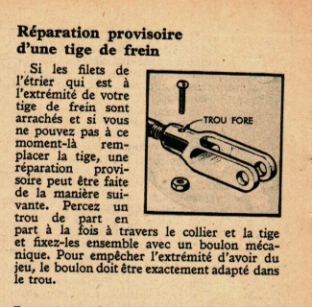 Réparation provisoire d’une tige de frein
