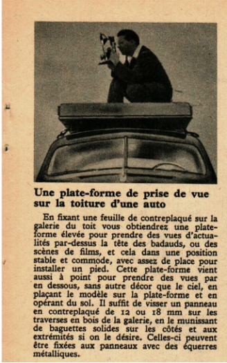 Une plate-forme de prise de vue sur la toiture d’une auto