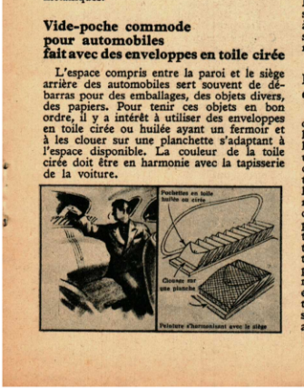 Vide-poche commode pour automobiles fait avec des enveloppes en toile cirée
