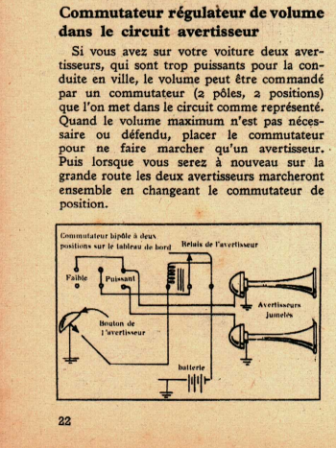 Commutateur régulateur de volume dans le circuit avertisseur