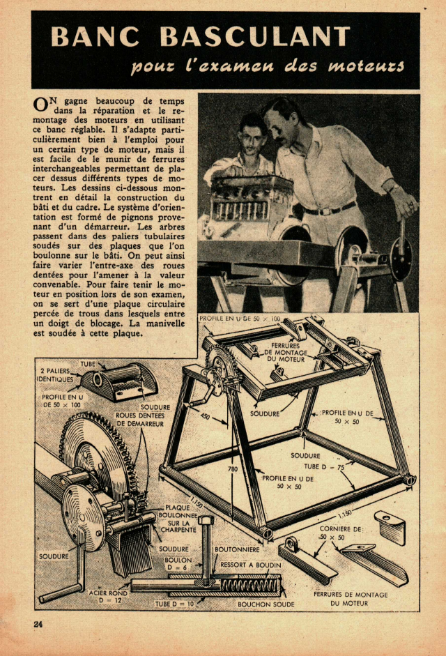 Banc basculant pour l’examen des moteurs.